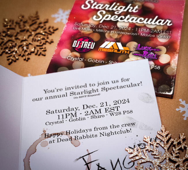 Are you into magic? Are you a criminal? A fan of the moon perhaps? If so, throughout the year, we’ll be releasing seasonal Dead Rabbits branded threads exclusively to members. Show everyone that you’re better than them with gear that you can only get by being a member!Private Venue Rental